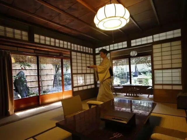每間房間里木制浴盆都散發(fā)著芬芳氣息,漆色精美。那里的小木桶都是由國寶級大師手工制作而成。晚餐盛成精美的小份裝在名貴的瓷器中,如藝術(shù)品一般。透過房間的紗窗向外望去,花園里的巖石和綠樹赫然映入眼簾。壁龕上掛著一副水墨畫。房間內(nèi)光線柔和而靜謐。旅館服務(wù)員們穿著和服來來往往。